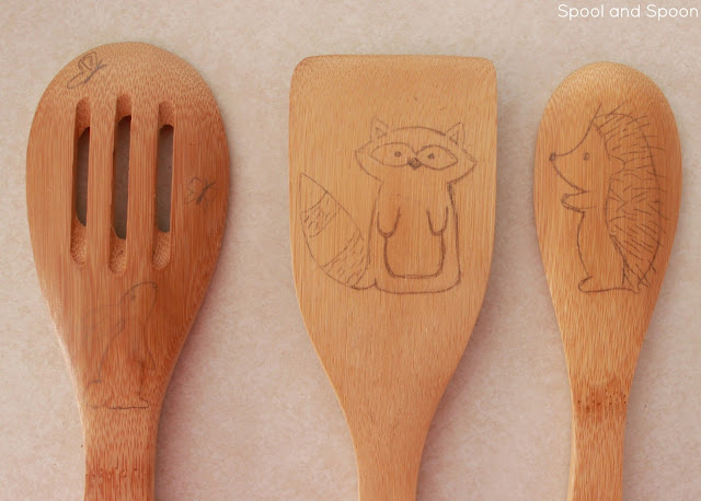 I have been wanting a wood-burning kit for awhile; it's probably my inner girl scout or something. For some reason I always thought they were super expensive or something and then last week the Mr. and I were perusing the aisles of A.C. Moore and I saw that the start-up kit was all of $12.99 so with the 40% off coupon, it would be like $8. I snagged it right away. I came home and pondered and pondered and pondered some more. Oh what should I make? Well, I wanted a simple beginner project but the only wood I had was a set of bamboo spoons from Jo-Ann's.